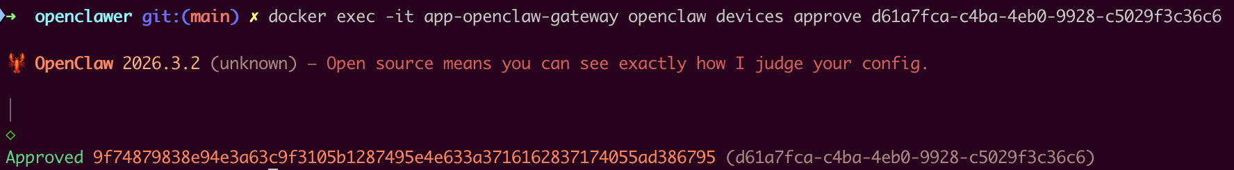 docker exec -it app-openclaw-gateway openclaw devices approve <requestId>