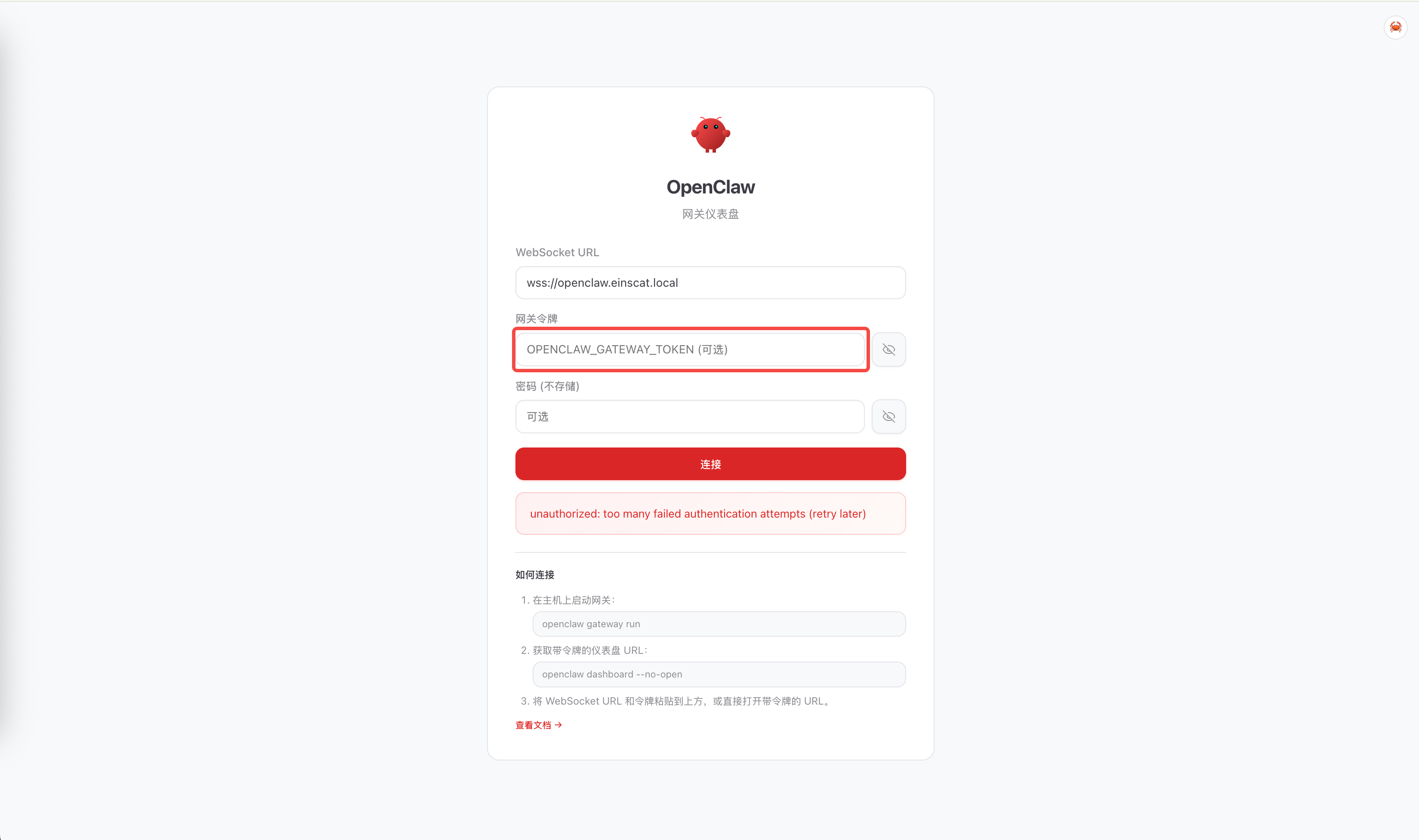 2026-03-17T11:01:17.129+08:00 [ws] unauthorized conn=f3d2b355-aede-4253-8f81-ce89a4185d5a remote=172.20.0.2 client=openclaw-control-ui webchat v2026.3.13-1 reason=device_token_mismatch
