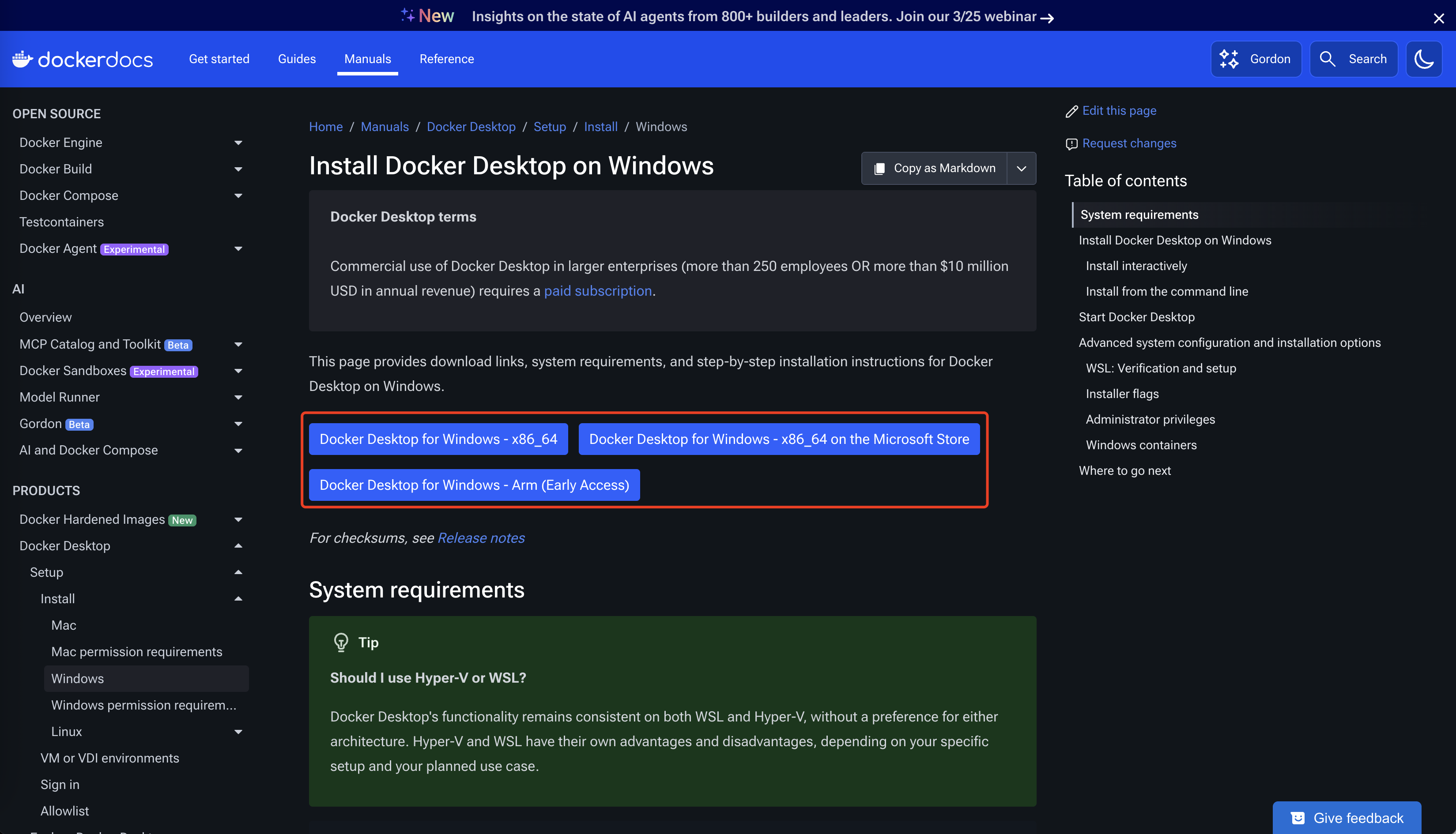 访问Install Docker Desktop on Windows,下载与自己机器对应的版本。