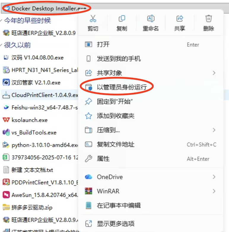 - 选中安装包,右键 → 以管理员身份运行