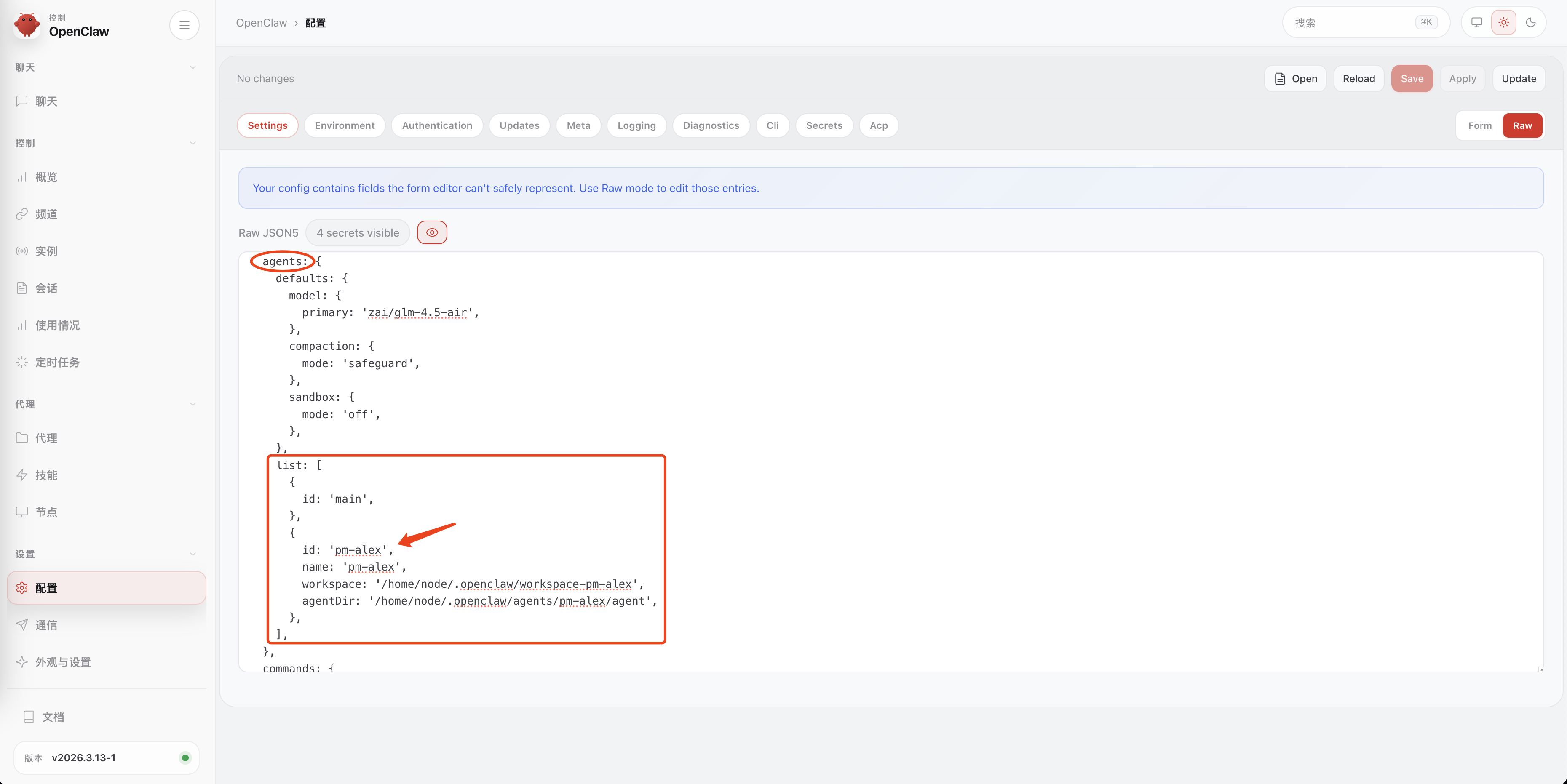 还可以在 ~/.openclaw/openclaw.json 中 agents 下的 list查看: